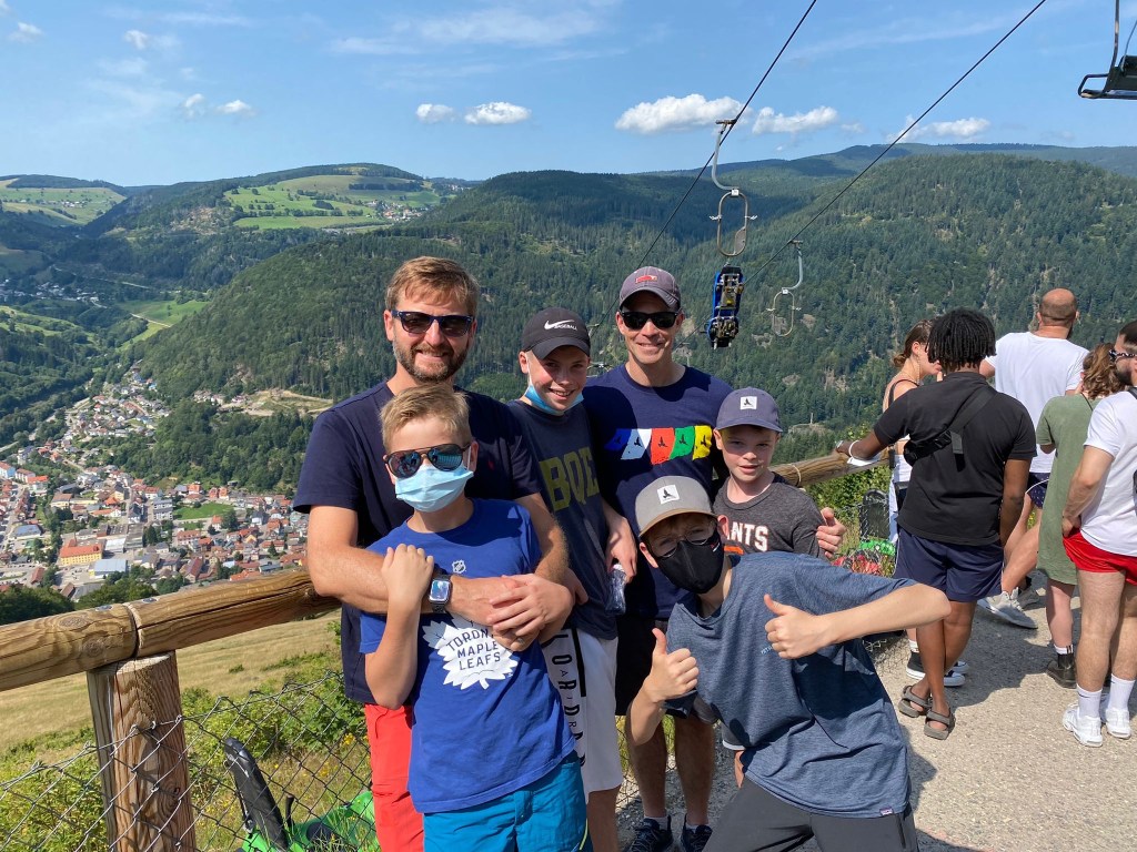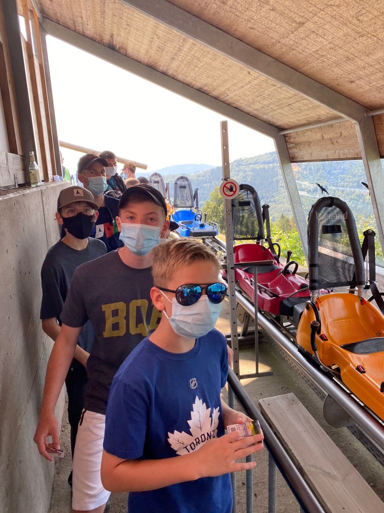 We also went to Germany to ride go carts down a mountain. It is called luging. You take a gondola up to the peak of the mountain and then wait in a very long line to get in a small go cart and go down the mountain. It was lots of fun. The first time we got stuck behind a slow old lady (not our mom) so we went for a second time. After going down again we went into town to get gelato. And on the way there and back we drove on the German autobahn with no speed limits.