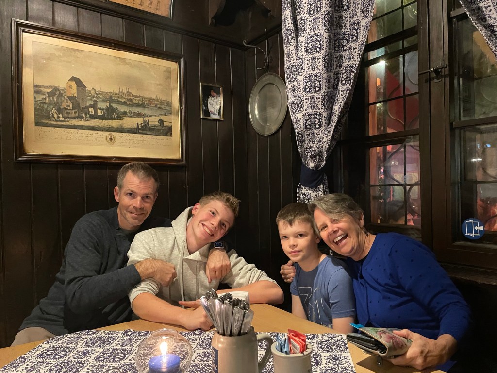 The highlight of the trip for the parents was that night. We went out to dinner with Dad’s college friends, Adam and Vicky, who live in Munich with their two kids. It was a great meal. Adam helped us with the menu. And it made our Dad really happy.