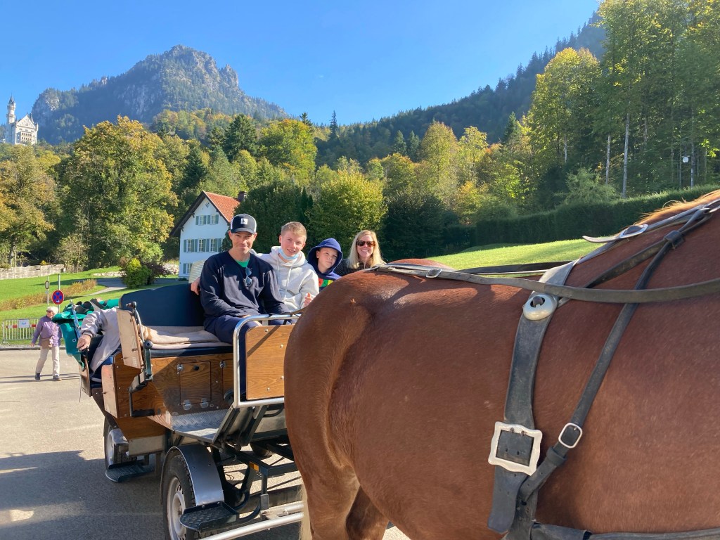 Next day we drove to a little town of Hohenschwangau and took a horse-drawn carriage up to the Neuschwanstein Castle. The horses peed and pooped on the road a lot. But it was better than walking.