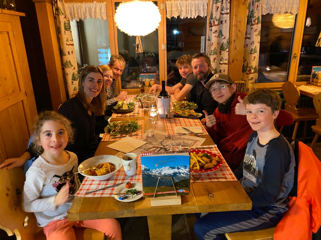 Mara attended ski school every day in MΓΌrren and was a natural. We are all very proud of her pizza snow plow!