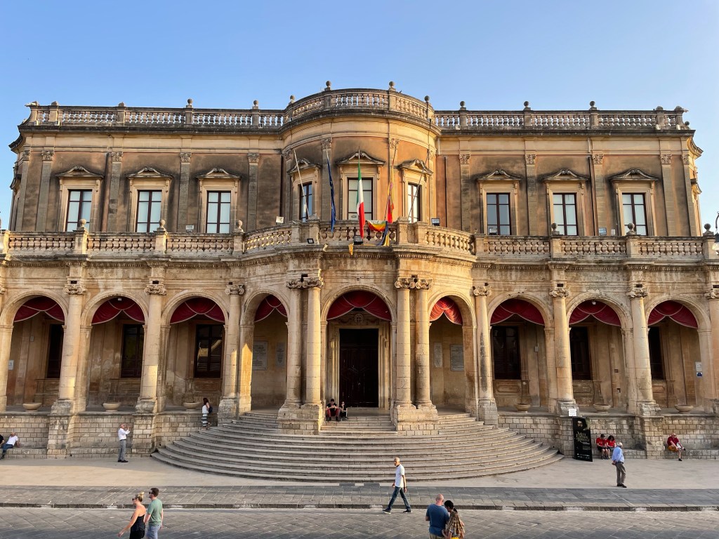 We check out the Palazzo Ducezio, now the town hall, across the street and the nearby Palazzo Nicolaci before heading to dinner.