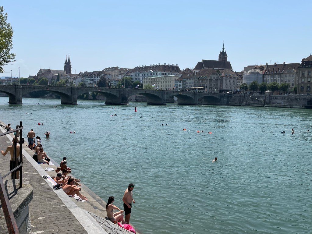 It was a 95-degree day and the crowds were out. Swimming or having drinks at the outdoor cafes on the banks of the river.