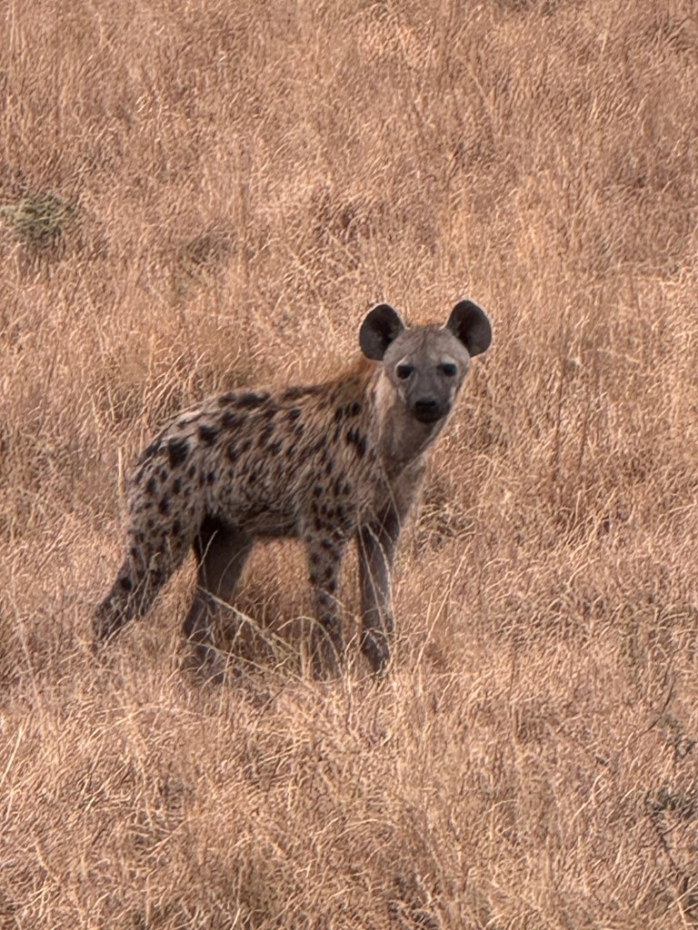 We get into our new routine: Game drives at 6:30 am and 4 pm and exercise and eating in between. Meals are uniformly great but huge. The boys start declining food and I eat more to politely compensate. Zebras are everywhere in Tsavo. “Zebers” Peter will note and we nod. We encounter antelope of all types (Oryx, bucks, dik diks, gazelle). We see spotted and striped hyenas and jackals, giraffes, baboons and elephants.