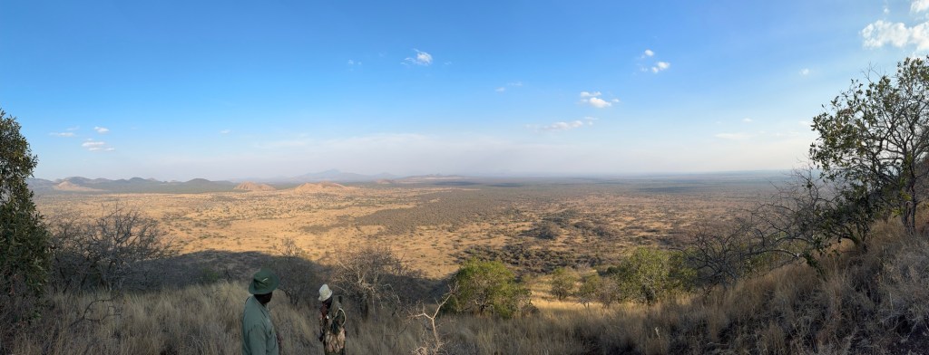 A highlight on our final day in Tsavo is an uphill hike to get a view of the plains below and Mount Kilimanjaro in the distance. Despite our inappropriate shoes we survive.
